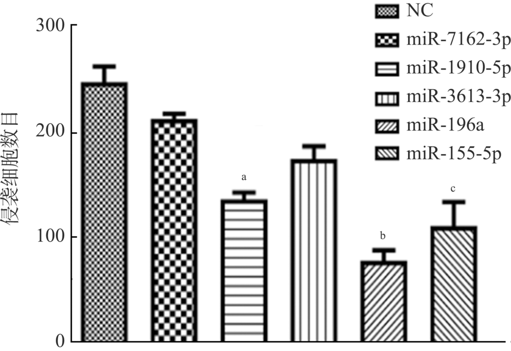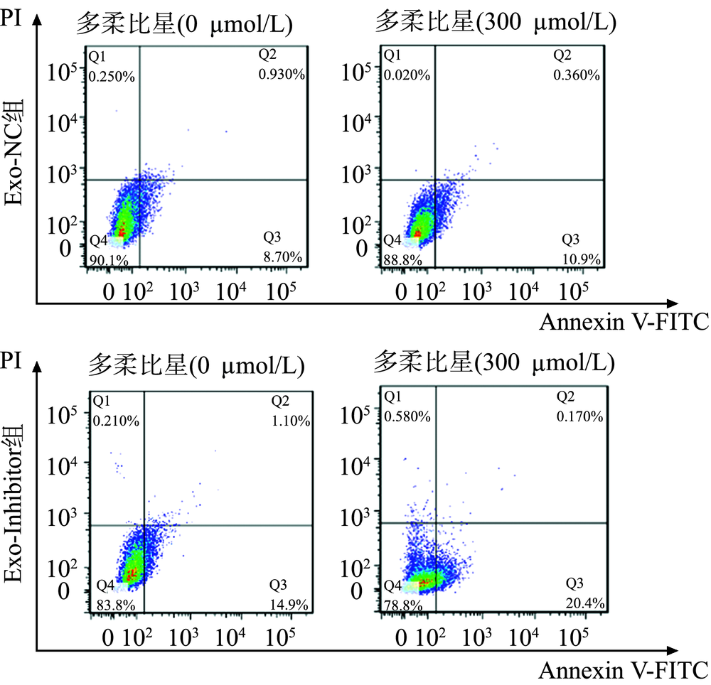 目的 筛选肝癌干细胞来源外泌体中差异表达的miRNA并分析其对肝癌细胞恶性生物学特征的影响。方法 采用miRNA表达谱芯片分析肝癌干细胞来源外泌体中差异表达的miRNA并鉴定miRNA对肝癌干细胞恶性表型的作用。采用不同浓度(0、150、300 μmol/L)多柔比星处理细胞,采用实时定量PCR(qRT-PCR)检测miR-196a表达水平的变化;分别采用肝癌干细胞来源外泌体(Exo-NC组)、转染miR-196a抑制剂处理后的外泌体(Exo-Inhibitor组)培养肝癌细胞,检测肝癌细胞的凋亡情况以及caspase3/7的活性。按照随机数字表法将裸鼠分为Do-PBS组、Do-Exo-Inhibitor组、Do-Exo-NC组,每组各5只,采用裸鼠移植瘤实验分析miR-196a对肝癌细胞裸鼠移植瘤模型的作用。结果 本研究分离纯化了CD133+ Huh7干细胞培养上清中的外泌体,发现miR-7162-3p、miR-1910-5p、miR-3613-3p、miR-196a、miR-155-5p表达上调,miR-1246和miR-3613-5p表达下调。外泌体中miR-7162-3p、miR-196a和miR-155-5p对肝癌干细胞的自我更新能力具有重要影响;miR-1910-5p、miR-196a和miR-155-5p对肝癌干细胞的侵袭能力具有重要影响,其中miR-196a的抑制效果最显著。在反应24 h时,多柔比星浓度在0、150、300 μmol/L时miR-196a的表达量分别为0.96±0.05、1.23±0.05和2.33±0.03,差异具有统计学意义(F=996.90,P<0.001);48 h时,多柔比星浓度在0、150、300 μmol/L时miR-196a的表达量分别为1.02±0.07、2.35±0.05和2.89±0.55,差异具有统计学意义(F=303.00,P<0.001)。Exo-NC组肝癌细胞在多柔比星浓度为0和300 μmol/L时的细胞凋亡率分别为9.37%±0.19%和11.64%±0.27%,Exo-Inhibitor组分别为18.80%±1.91%和22.79%±1.57%,差异均具有统计学意义(t=4.41,P=0.048;t=4.96,P=0.038)。未使用多柔比星处理时,Exo-NC组在24 h和48 h的caspase3/7比值分别为0.94±0.08和0.97±0.09,Exo-Inhibitor组分别为1.56±0.01和1.58±0.01,差异均具有统计学意义(t=11.41,P=0.008;t=6.07,P=0.026)。使用300 μmol/L多柔比星处理细胞后,Exo-NC组在24 h和48 h的caspase3/7比值分别为0.95±0.07、1.36±0.08,Exo-Inhibitor组分别为2.84±0.08、3.20±0.14,差异均具有统计学意义(t=24.20,P=0.002;t=15.78,P=0.004)。Do-PBS组、Do-Exo-Inhibitor组和Do-Exo-NC组3组裸鼠的移植瘤体积依次增大,分别为(1 051.86±89.90)mm3、(1 310.91±86.66)mm3和(2 185.14±352.34)mm3,差异具有统计学意义(F=30.28,P<0.001);3组移植瘤重量依次增加,分别为(0.36±0.10)g、(0.39±0.12)g和(0.76±0.16)g,差异具有统计学意义(F=11.81,P=0.002);转染miR-196a抑制剂后裸鼠移植瘤肿瘤内miR-196a的表达显著降低,3组表达量分别为1.05±0.16、0.38±0.08和2.17±0.26,差异具有统计学意义(F=48.93,P<0.001)。结论 肝癌干细胞分泌的外泌体可通过其中的miR-196a增强肝癌细胞对多柔比星的耐药性。